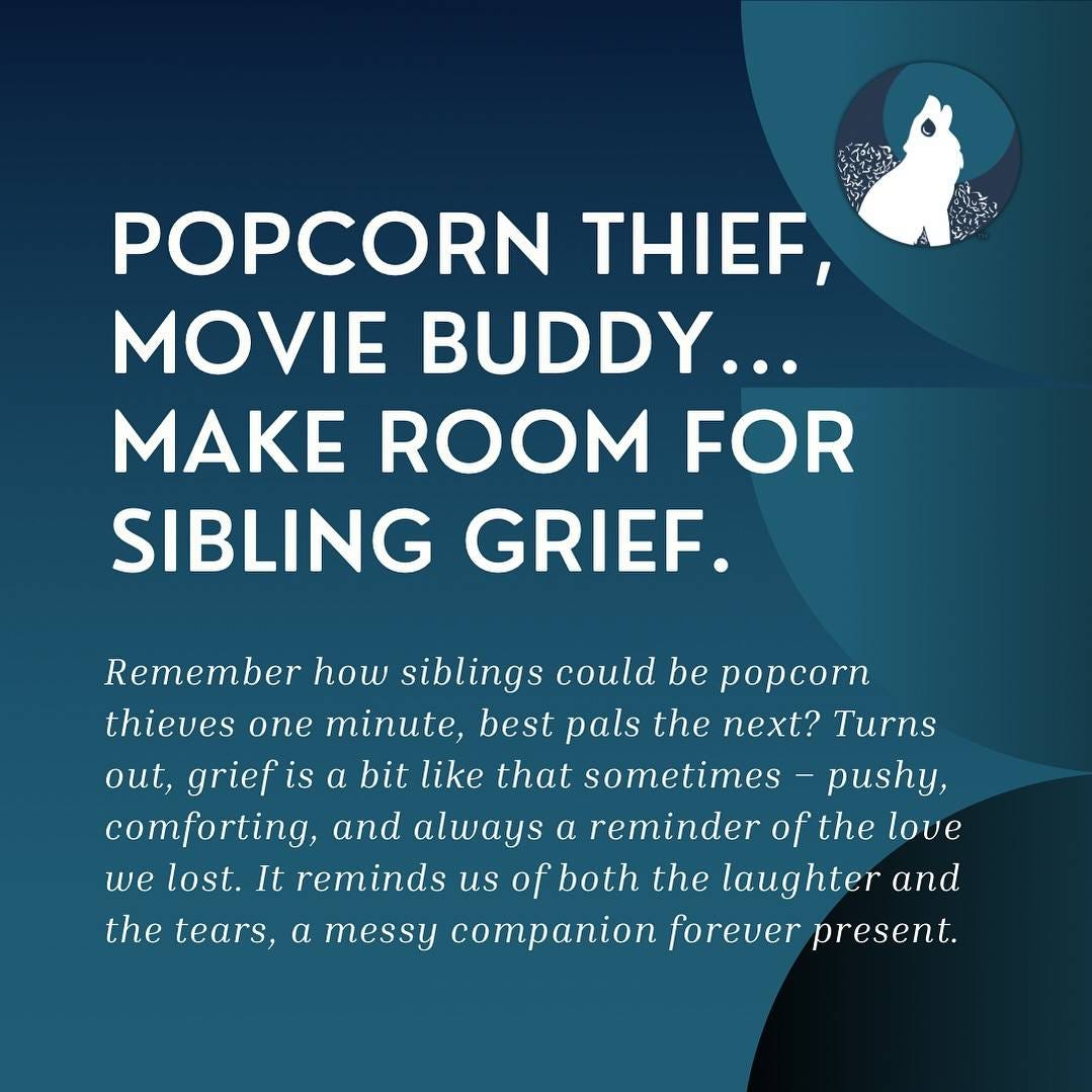 If you’re a surviving sibling looking for a safe space to process grief, consider our upcoming Sibling Grief Refuge retreat this August. It’s designed based on evidence-based grief practices and theories to ensure community, grief exploration, comfort, validation, and tools to help you move forward.